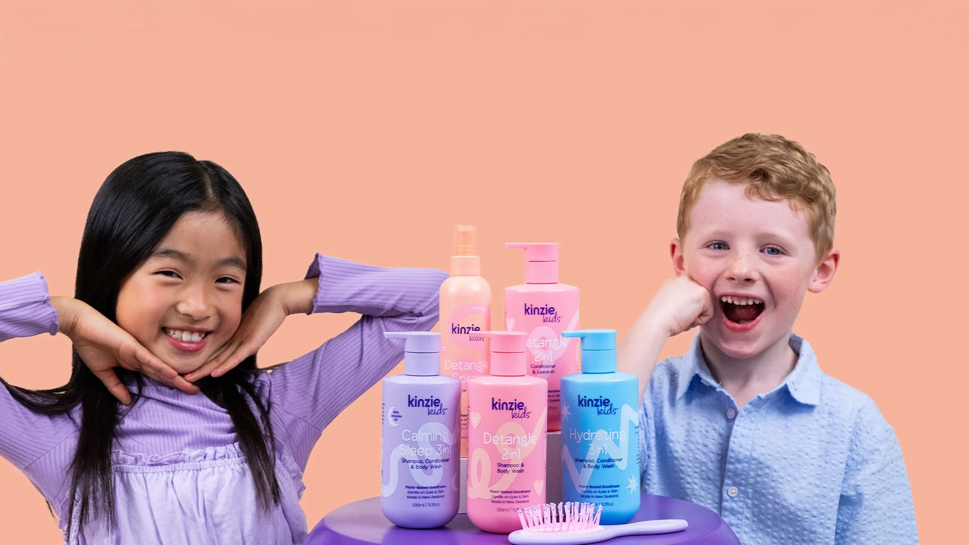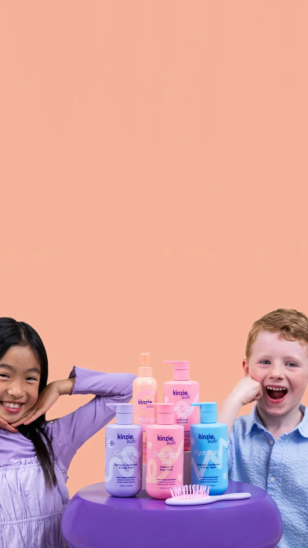 Bright, cheeky and playful. Kinzie is a big sister in a bottle, helping kids grow their confidence and independence through gentle hair care formulas, positive encouragement and designs they love.